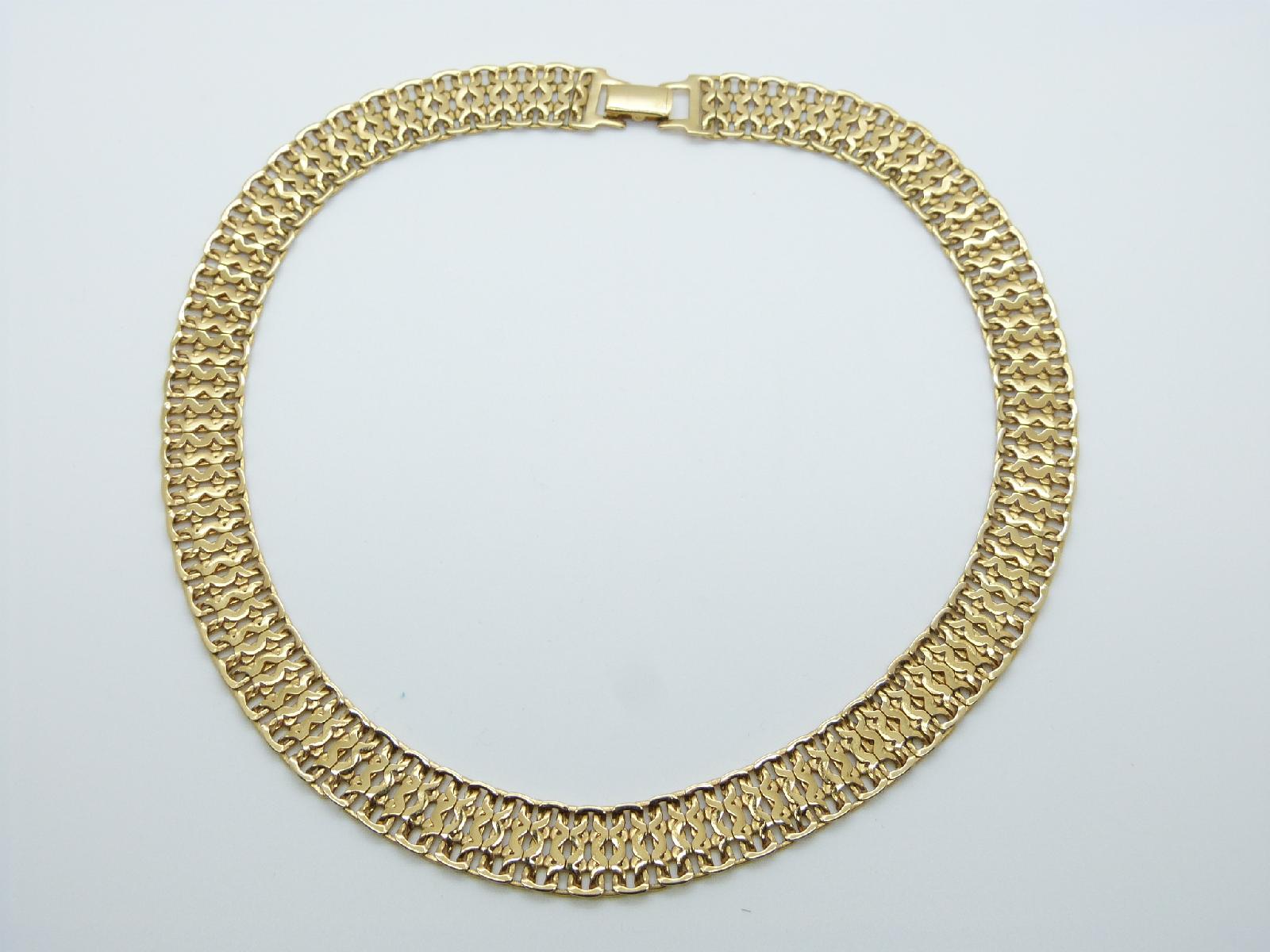 Vintage 80s Signed Monet Fancy Gold Plated Articulated Link Collar Necklace