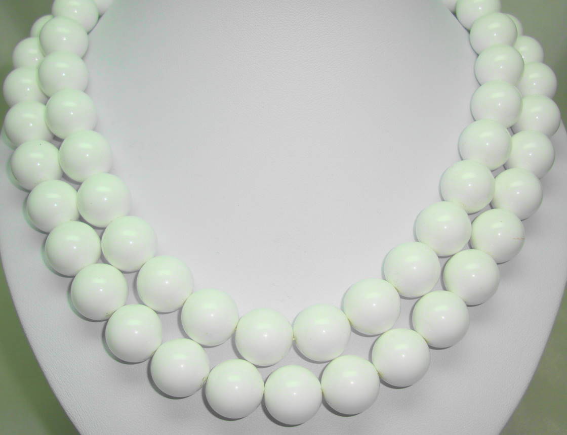 Vintage 80s Signed Monet Two Row Chunky White Bead Necklace Stunning!