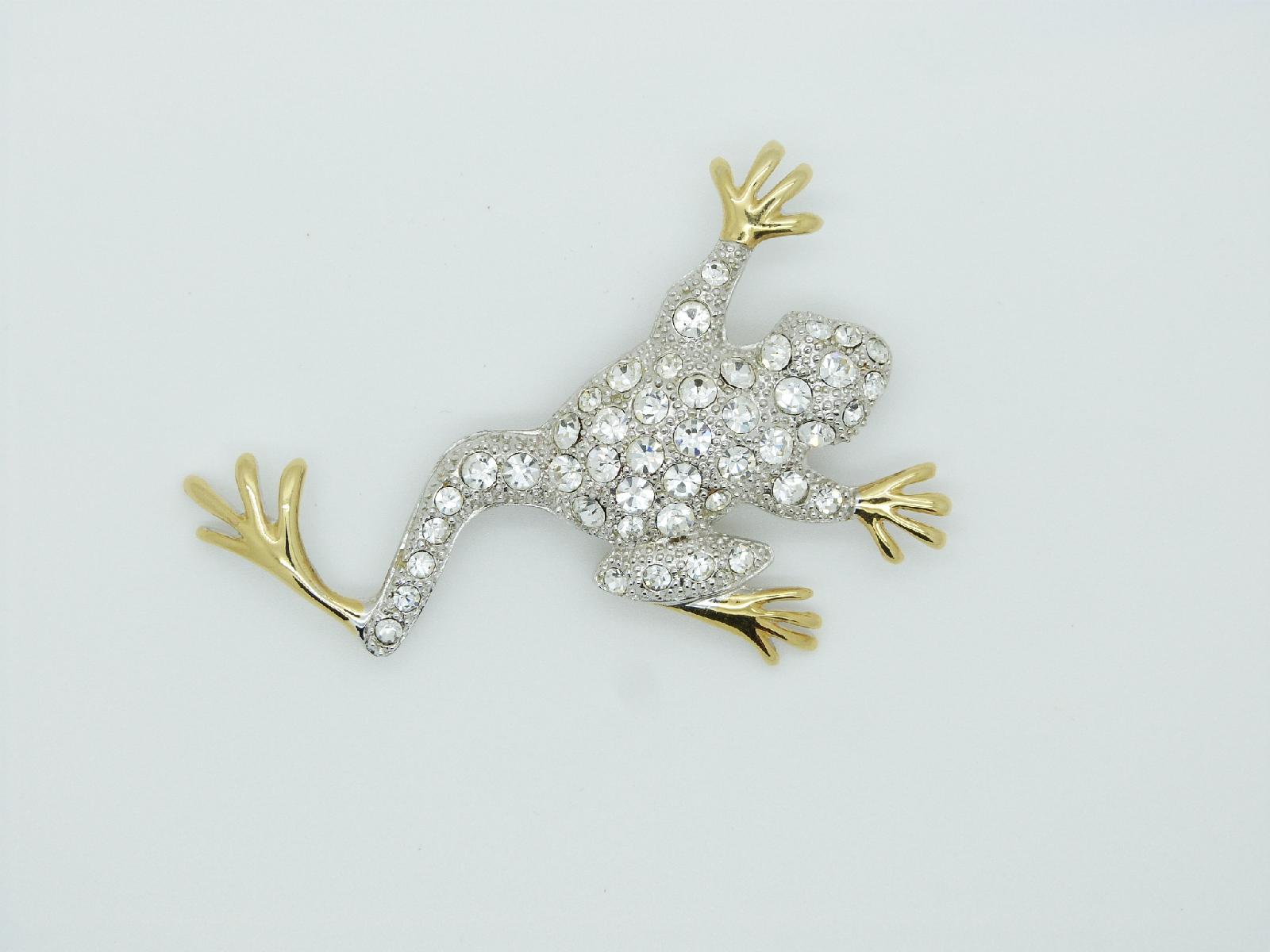 Vintage 80s Sparkling Crystal Diamante Quirky Goldtone Frog Brooch 8cms