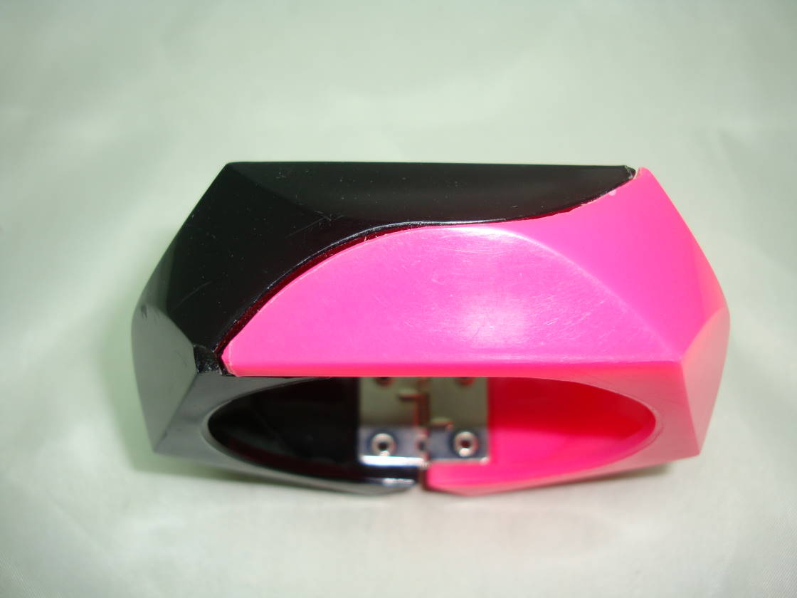 Vintage 80s Wide Neon Pink and Black Plastic Clamper Cuff Bangle