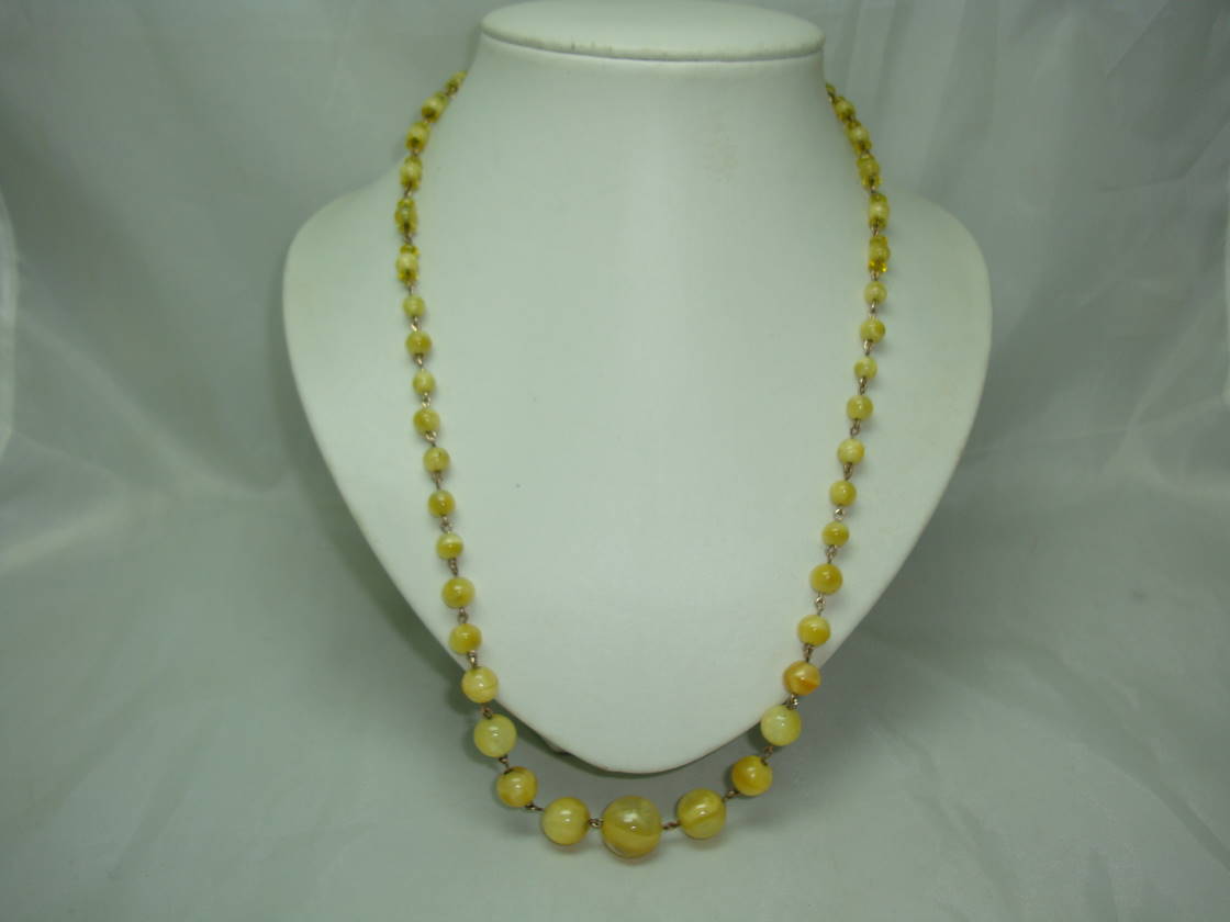 We are pleased to offer this beautiful vintage Art Deco 30s graduating yellow glass swirl/marble effect glass bead necklace on rolled gold links.  As you can see from the photos, the necklace is in excellent condition, very unusual as some of the glass beads have a star shape inside them, very special, I have never come across another one like this.]