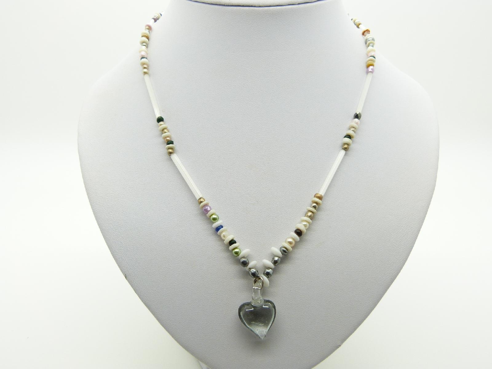 Vintage Redesigned Delicate Multicoloured Glass Bead Necklace Heart Pendant