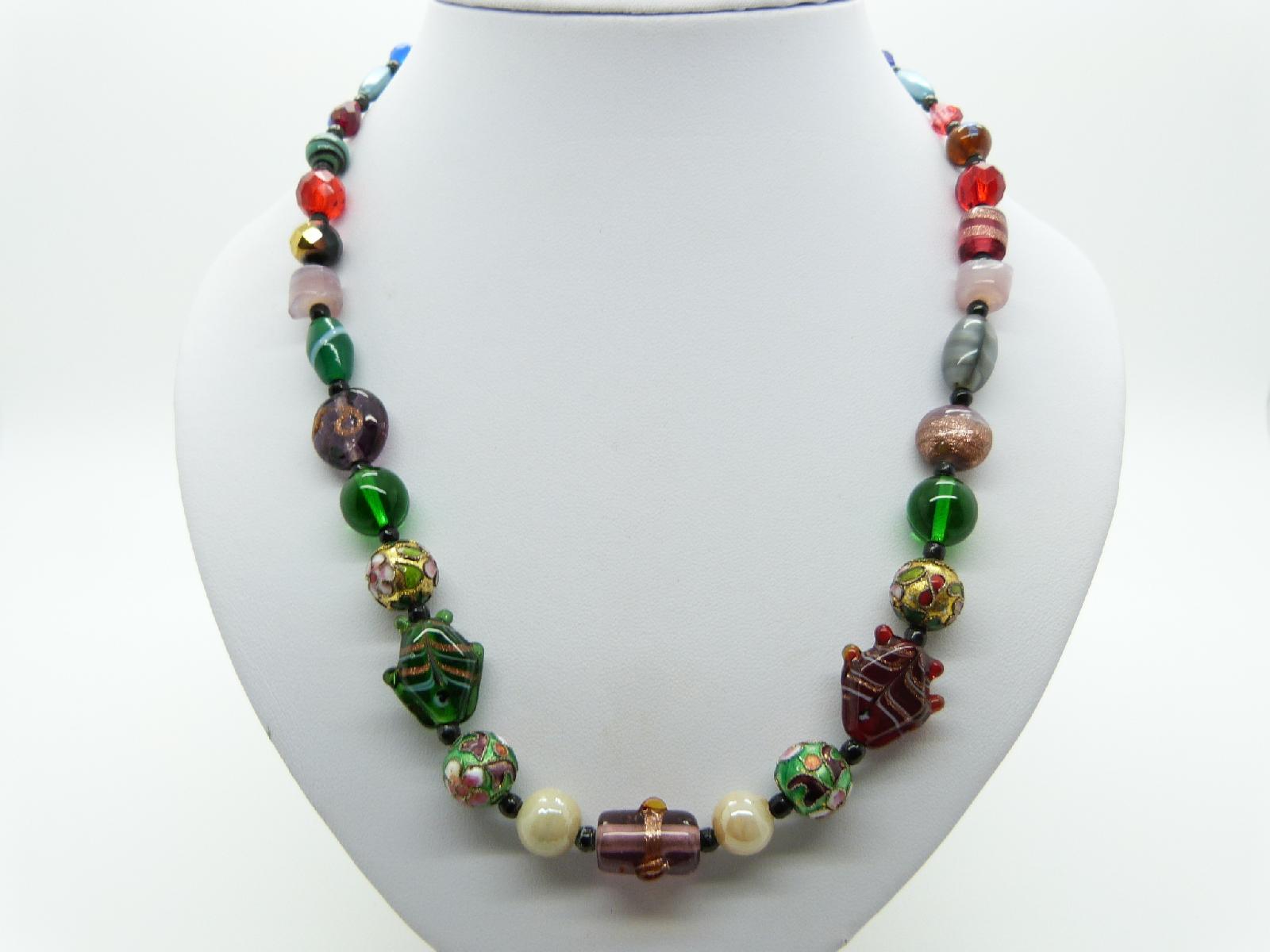 Vintage Redesigned Unusual Multicoloured Murano Glass and Cloisonne Necklace