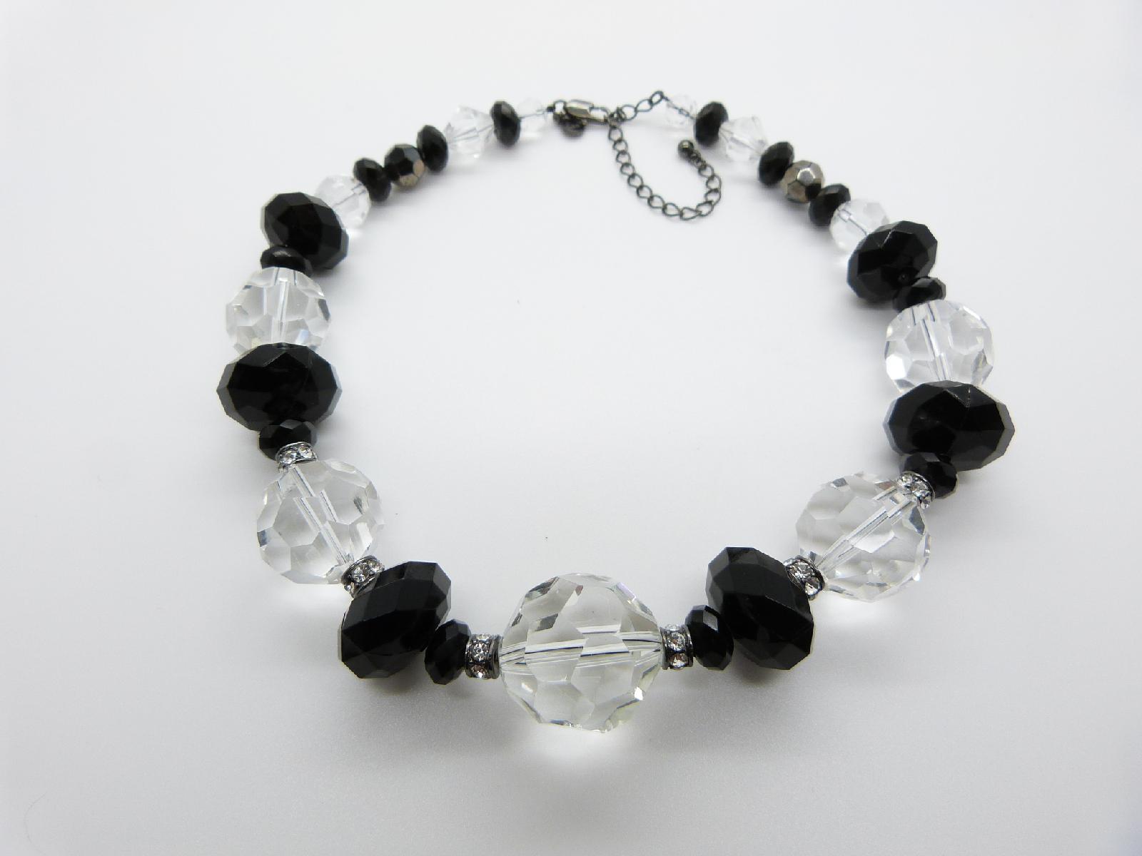 Vintge 50s Style Signed M&S Clear Glass Crystal Bead and Black Plastic Bead Necklace 46cms